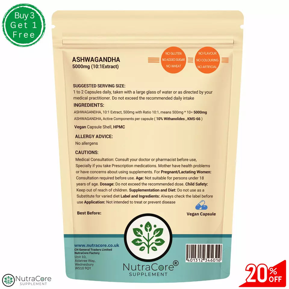 ASHWAGANDHA, 10.1 Extract, 500mg with Ratio 10.1, means 500mg * 10= 5000mg