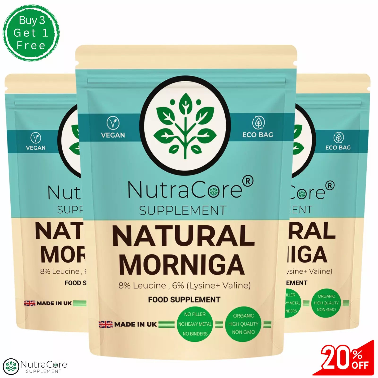 Moringa Extract The leaves have 7 times more vitamin C than oranges and 15 times more potassium than bananas. It also has calcium, protein, iron, and amino acids, which help body healing and build muscle. It's also packed with antioxidants, may boost your immune system. help blood Sugar level and can help women's Period Cycle. Moringa can help with energy level, sleep, and digestion health
