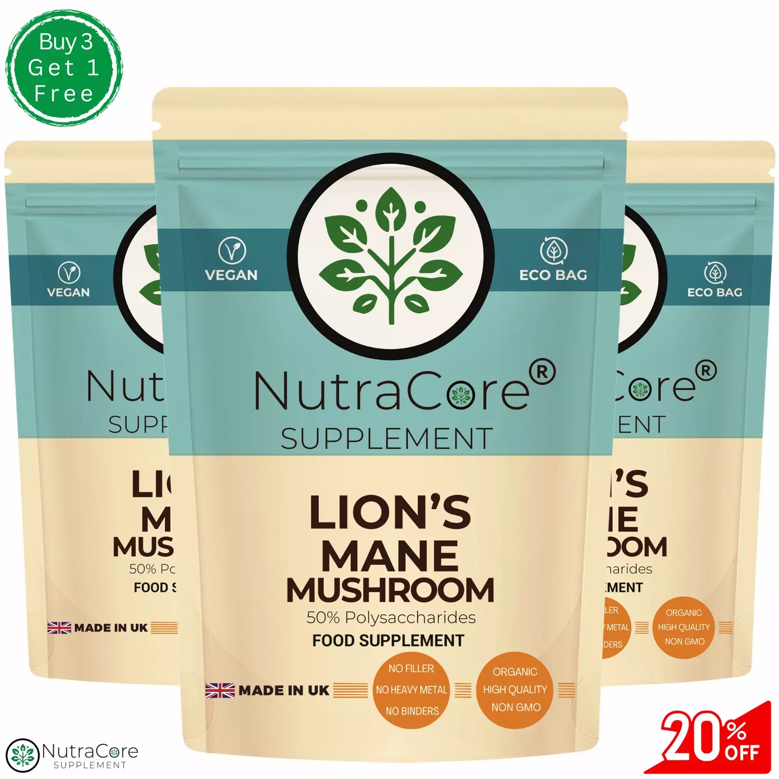 Organic Lions Mane Mushroom Capsules 500mg (40% Polysaccharides)+(20% β-Glucan), Support Blood Sugar Health