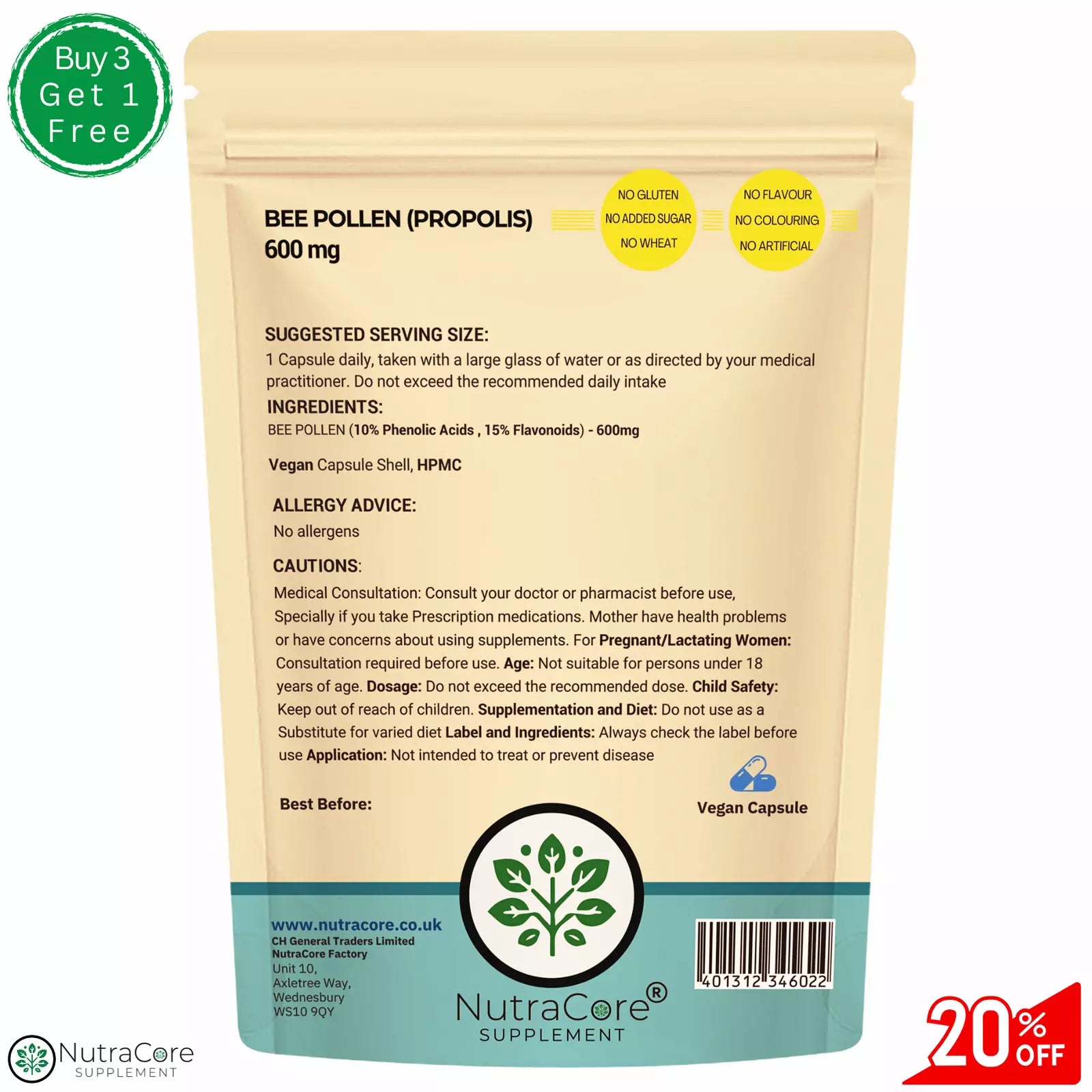 Bee Pollen Propolis Capsule 600mg-10% Phenolic Acids, 15% Flavonoid-Inflammatory